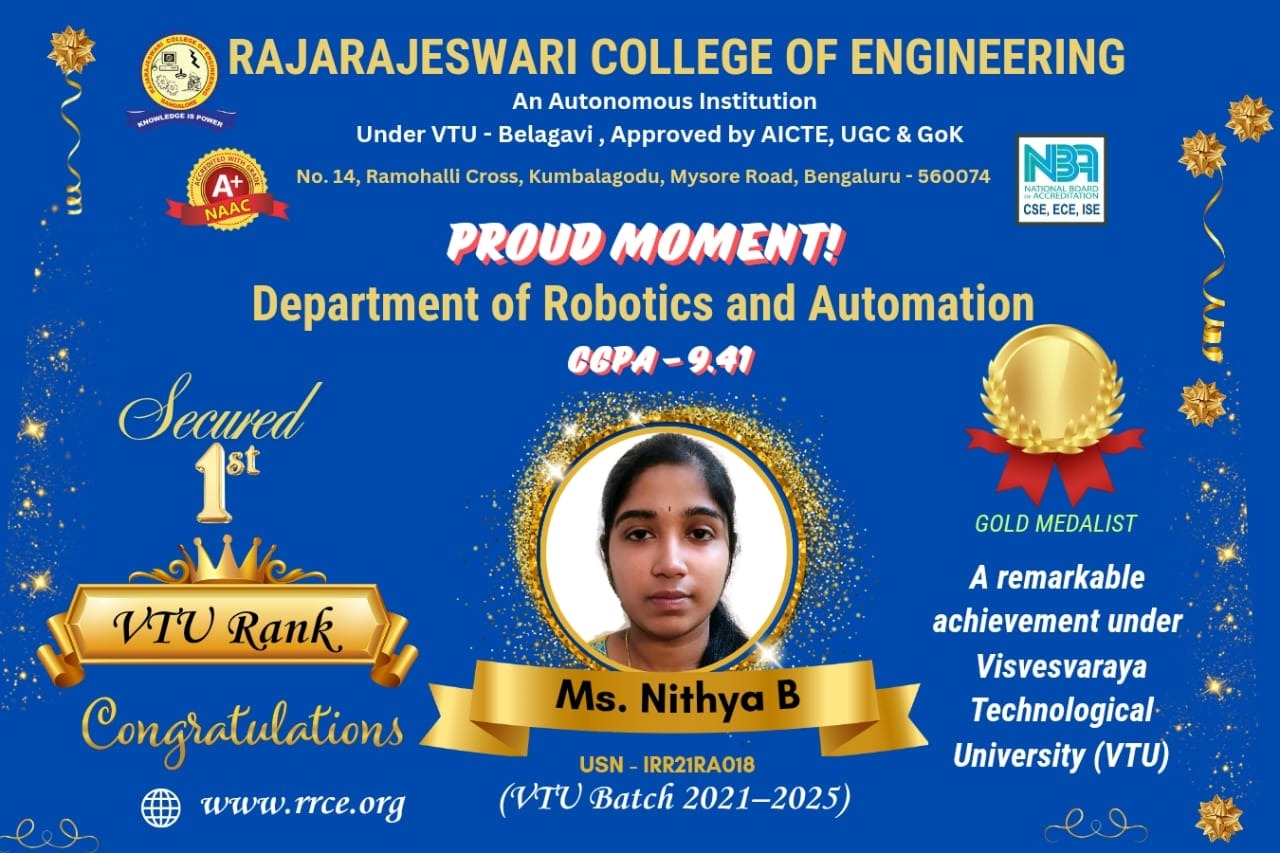 Rajarajeswari College of Engineering (RRCE) is an initiative to nurture and develop innovation. Students from diverse disciplines come together to develop many path-breaking initiatives. Started in 2006, managed by Moogambigai Charitable and Education Trust (MCET), Bangalore. The College is approved by All India Council for Technical Education, New Delhi, Govt. of Karnataka & affiliated to Visvesvaraya Technological University (VTU), Belgaum. The college is also ISO 9001-2008 certified.