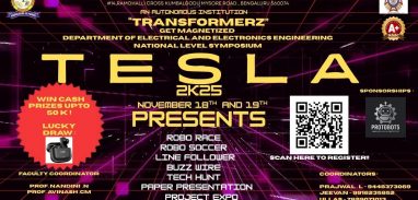 Read More ADMISSION ENQUIRY FOR 2025-26 | Mobile :+91-9008845678 & 9900058214The Department of Electrical and Electronics Engineering, Rajarajeswari College of Engineering, Bengaluru, under the banner of the Student Association, is organizing a National Level Technical Symposium – “TESLA 2K25” themed “Transformerz – Get Magnetized” on November 18th & 19th, 2025 at Rajarajeswari College of Engineering.