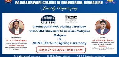Read MoreThe International MoU Signing Ceremony jointly organized by Dr. ACS College of Engineering and Rajarajeswari College of Engineering