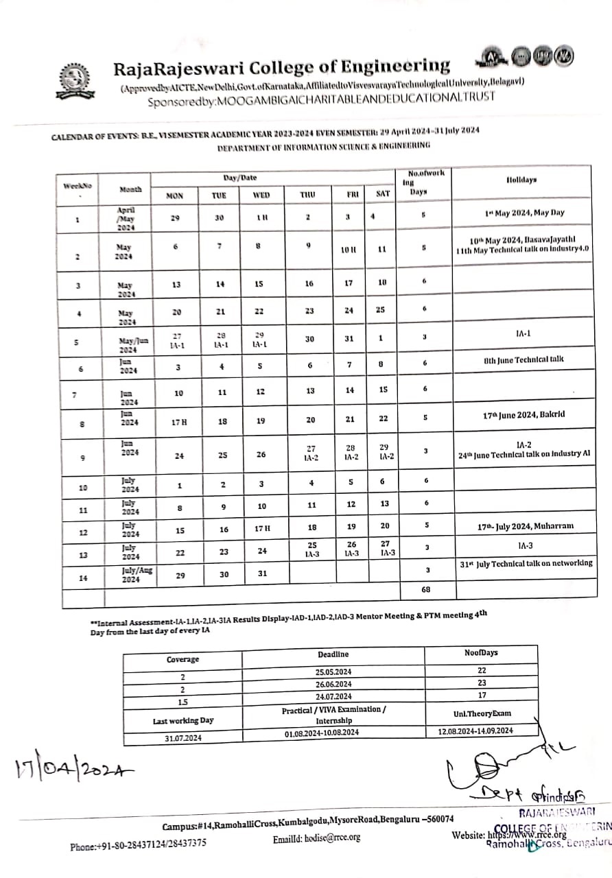 Academic Calendar of Events