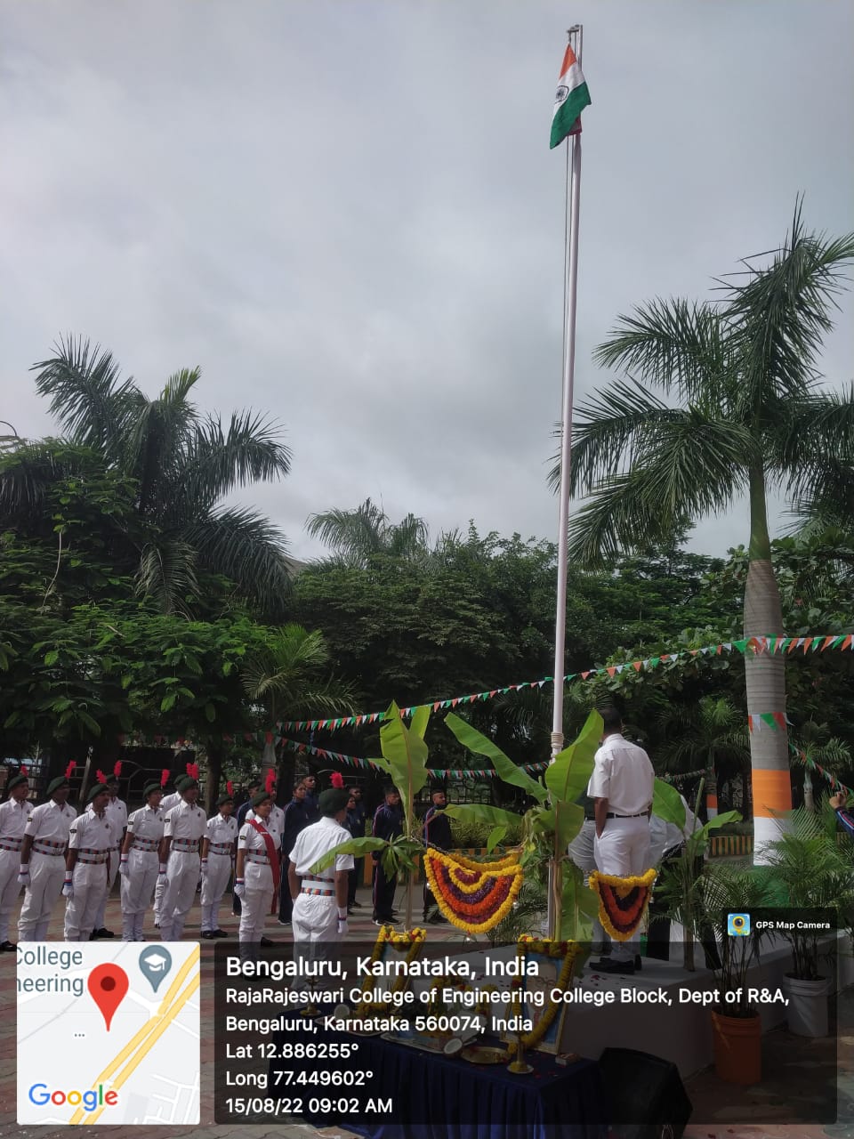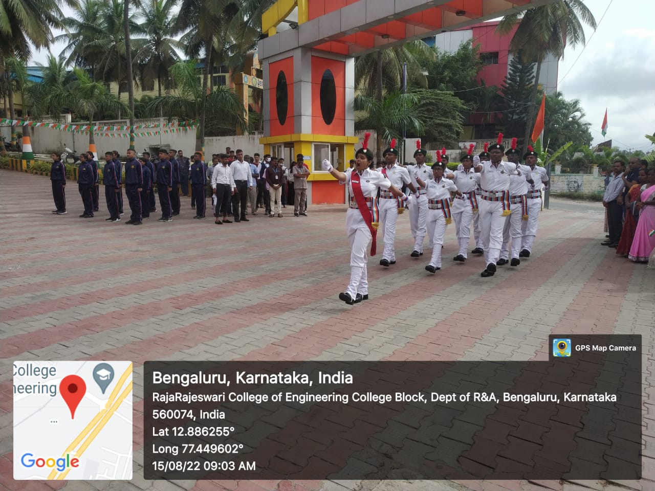 75th Independence Day was celebrated at RajaRajeswari College of Engineering (#RRCE), #Bangalore Campus. The Principal, Dr. T Chandrashekar unfurled our National Flag. NCC Cadet have carried out the Parade. Dr R Balakrishna, Dean – RRCE, Dr. J.Amutharaj, VP and ISE HoD, Dr.C.Ramesh, HoD – Mech. Engg, Dr L.Rangaiah, HoD – ECE, Dr.T.Kamalraj, ASP – CSE, Teaching and Non- Teaching staff members, students have participated in the celebrations.