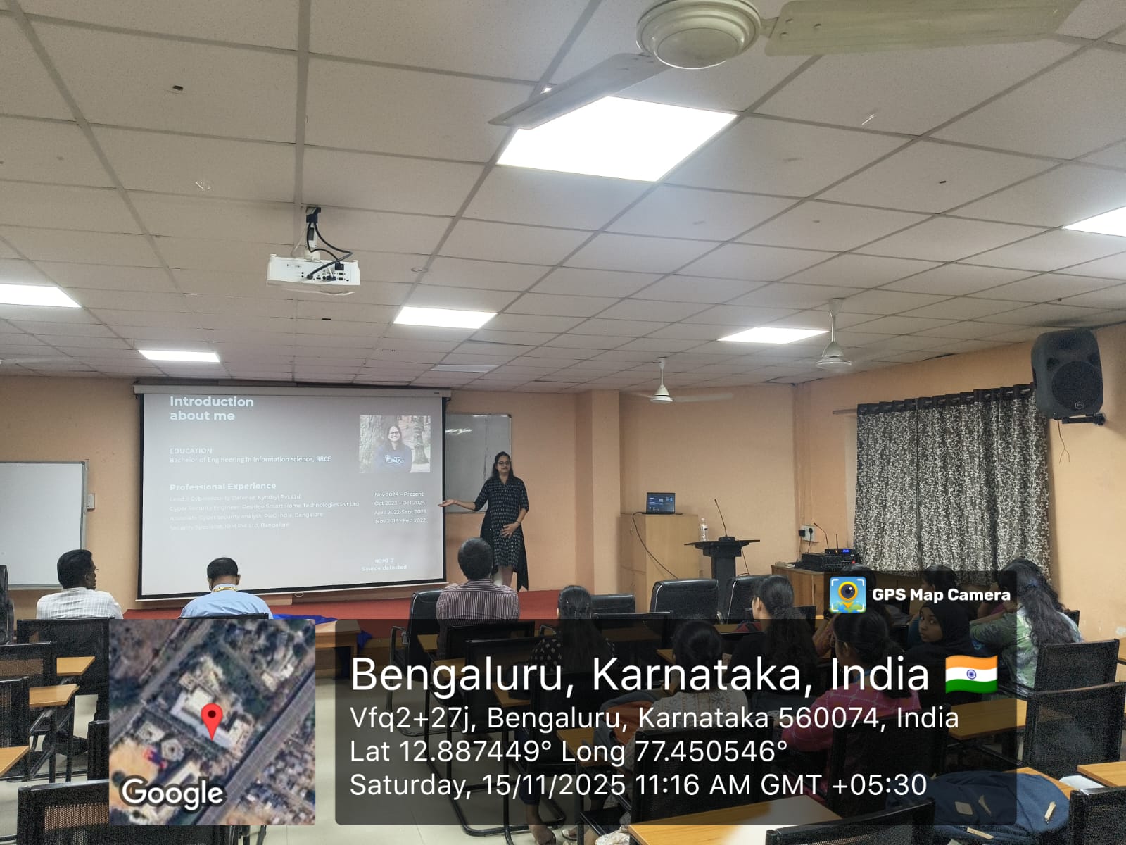 The Department of ISE successfully conducted an insightful Alumni Talk featuring Ms. Archana N H, who shared her expertise on cybersecurity threats, defense mechanisms, and industry best practices. The session provided students with practical knowledge, real-world examples, and valuable career guidance in the field of cybersecurity.