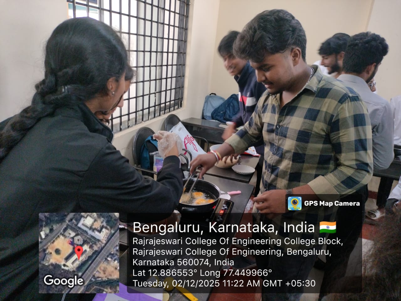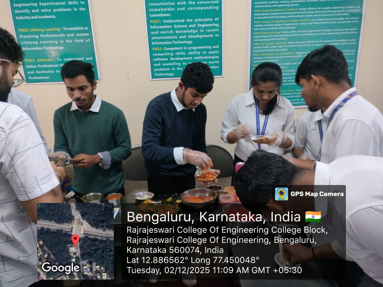 The Department of Information Science & Engineering organized an engaging Cook Without Fire – SCR Activity (Food Fest) on 2nd December 2025 at 10:00 AM in Room No. 220, RRCE.