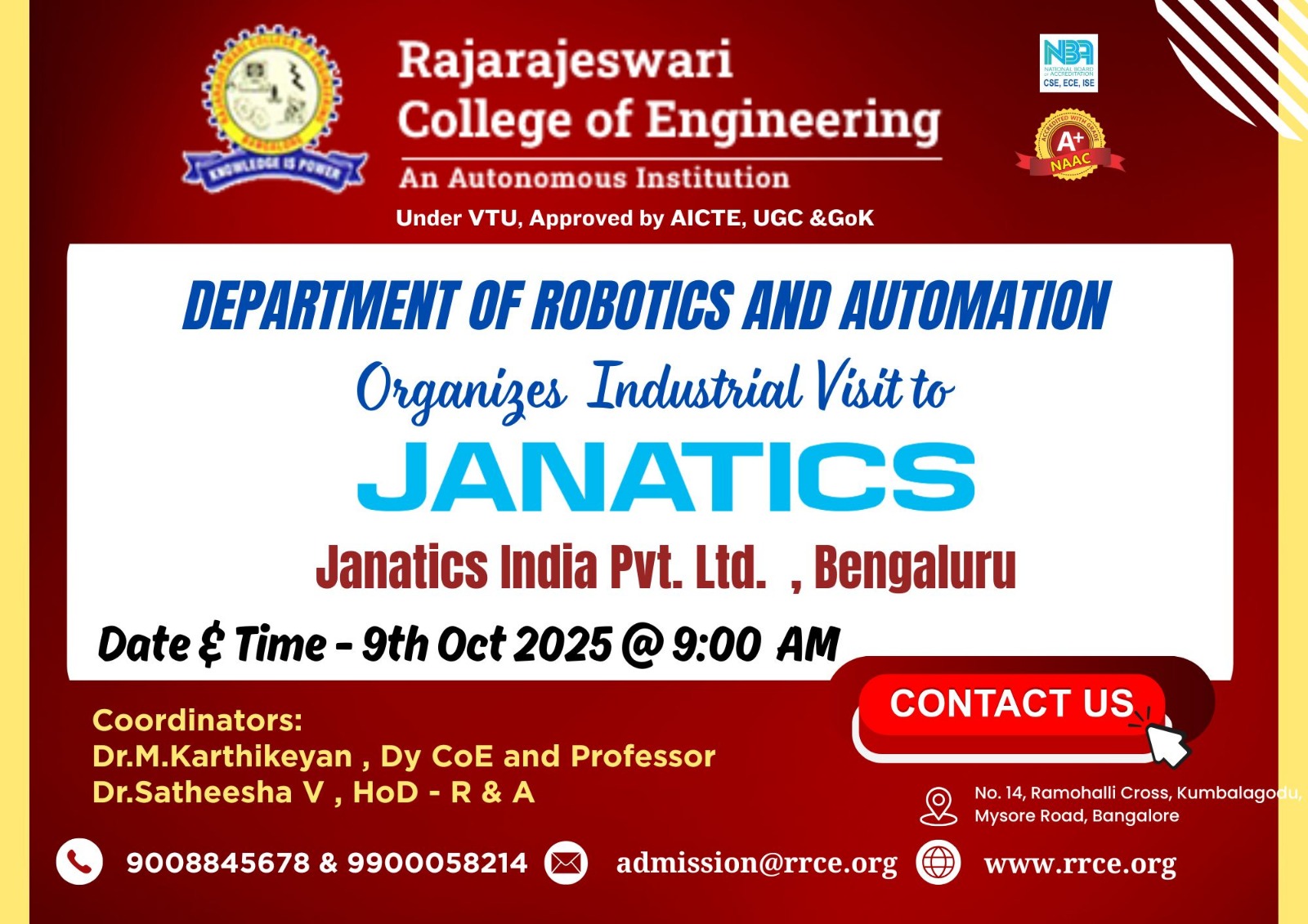 Organized by: Department of Robotics and Automation, Rajarajeswari College of Engineering