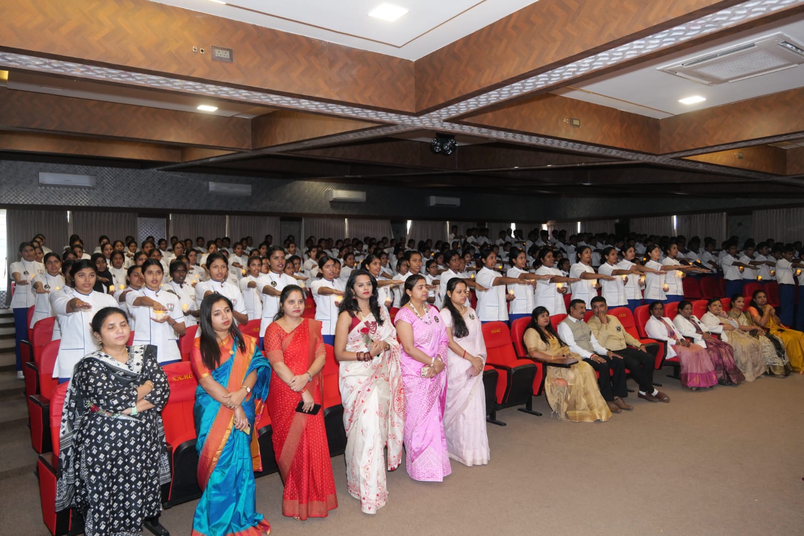 The ceremony continued with an insightful address by the Chief Guest, Mr. Shrikant Pulhari, who emphasized the importance of dedication, compassion, values, and commitment in the nursing profession.