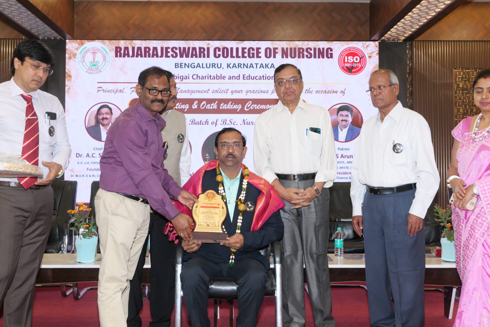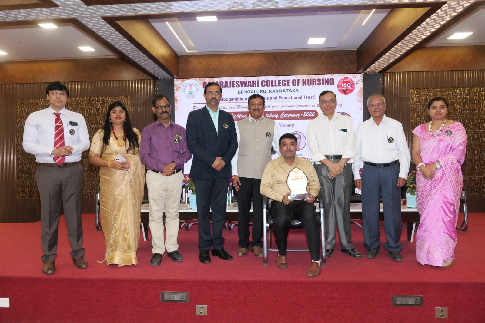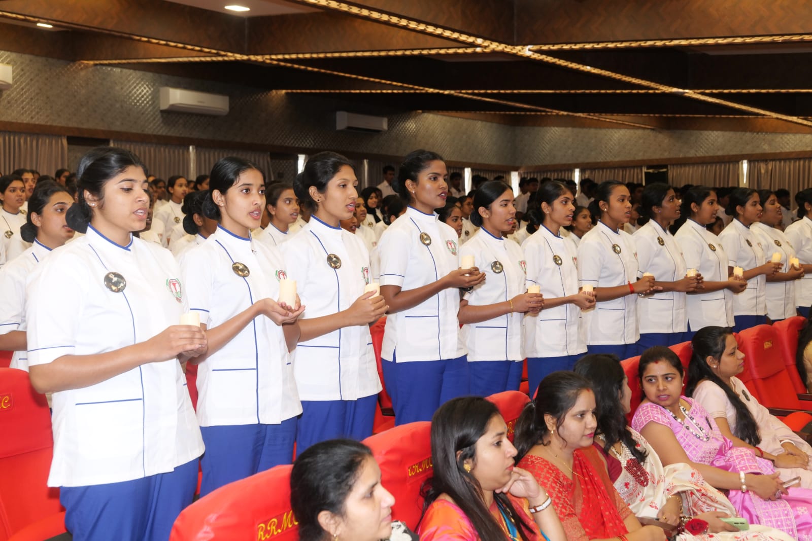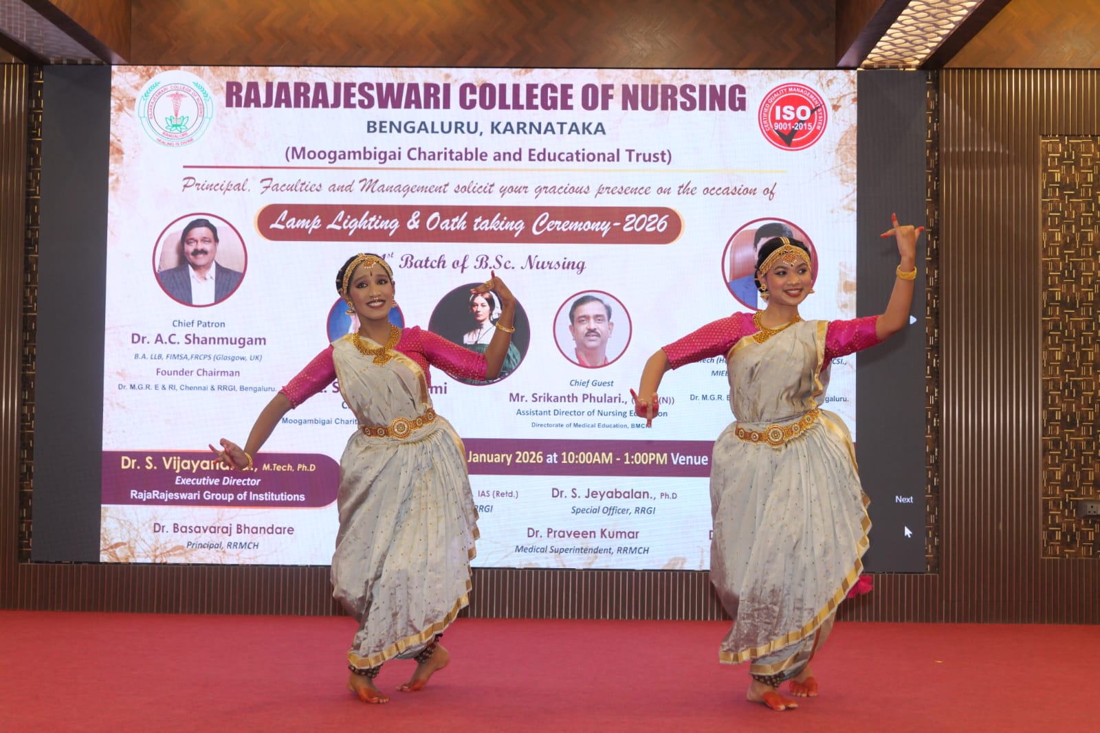 The 21st Lamp Lighting and Oath-Taking Ceremony was organized by RajaRajeswari College of Nursing on 21–01–2026. The ceremony was inaugurated by the Chief Guest, Mr. Shrikant Pulhari, Asst. Director of Nursing Education along with Mr. Seetharam C N, CEO; Dr. Sathyamurthy, Dean; Dr. Praveen Kumar, Medical Superintendent and Dr. Basavaraj Bandari, Principal, RRMCH. The lighting of the lamp symbolized the transmission of knowledge, wisdom, and professional values to the new generation of nursing students.