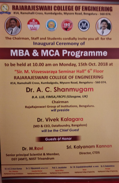 Inaugural Ceremony of MBA & MCA Programme on 15th October 2018