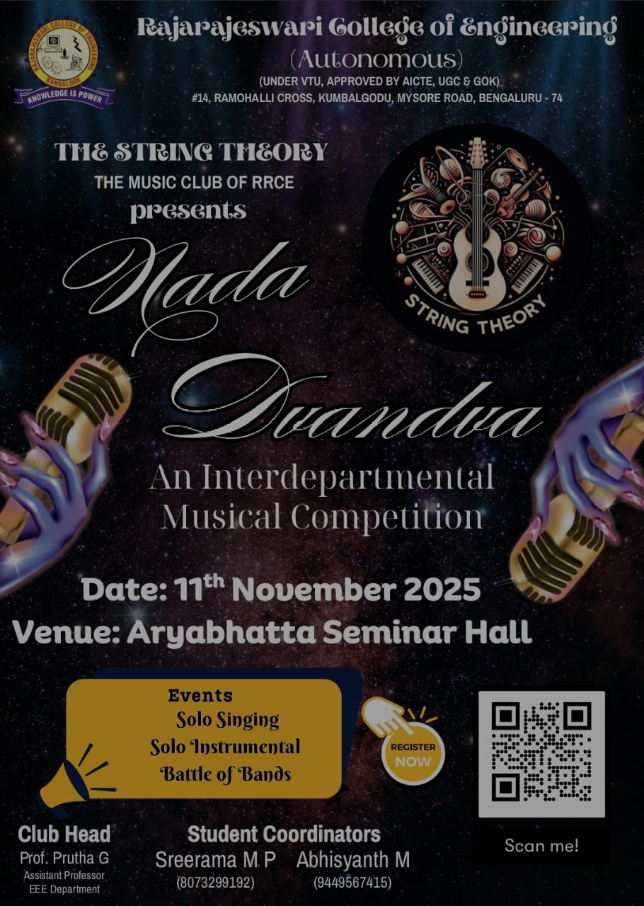 Rajarajeswari College of Engineering proudly presents “Nada Dvandva”, organized by The String Theory – The Music Club of RRCE.