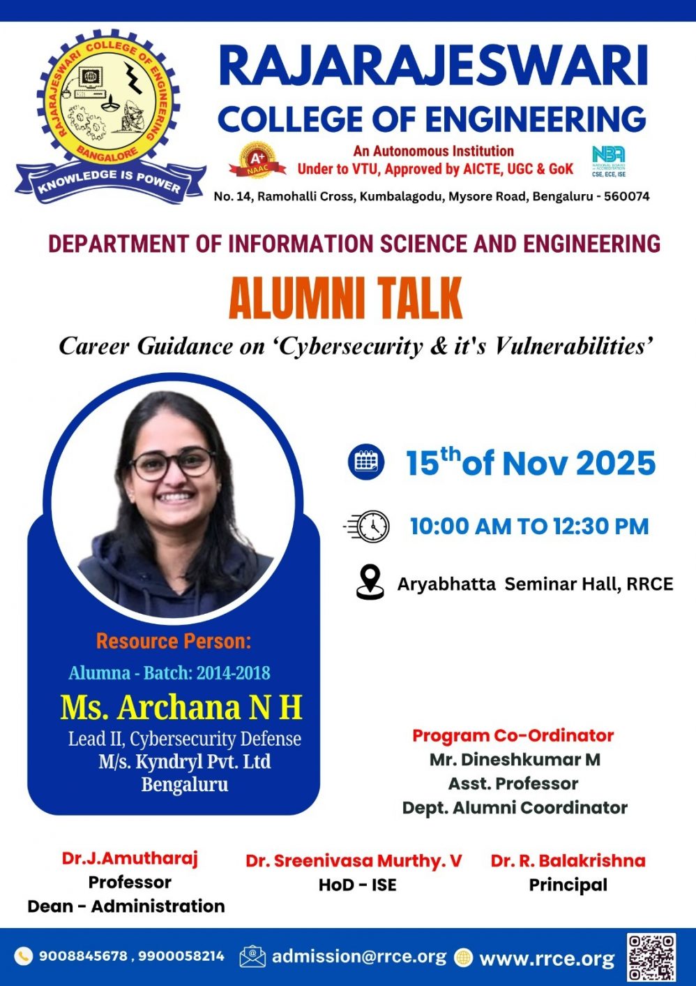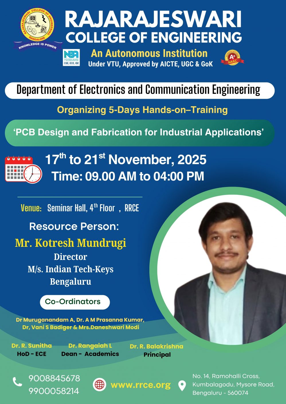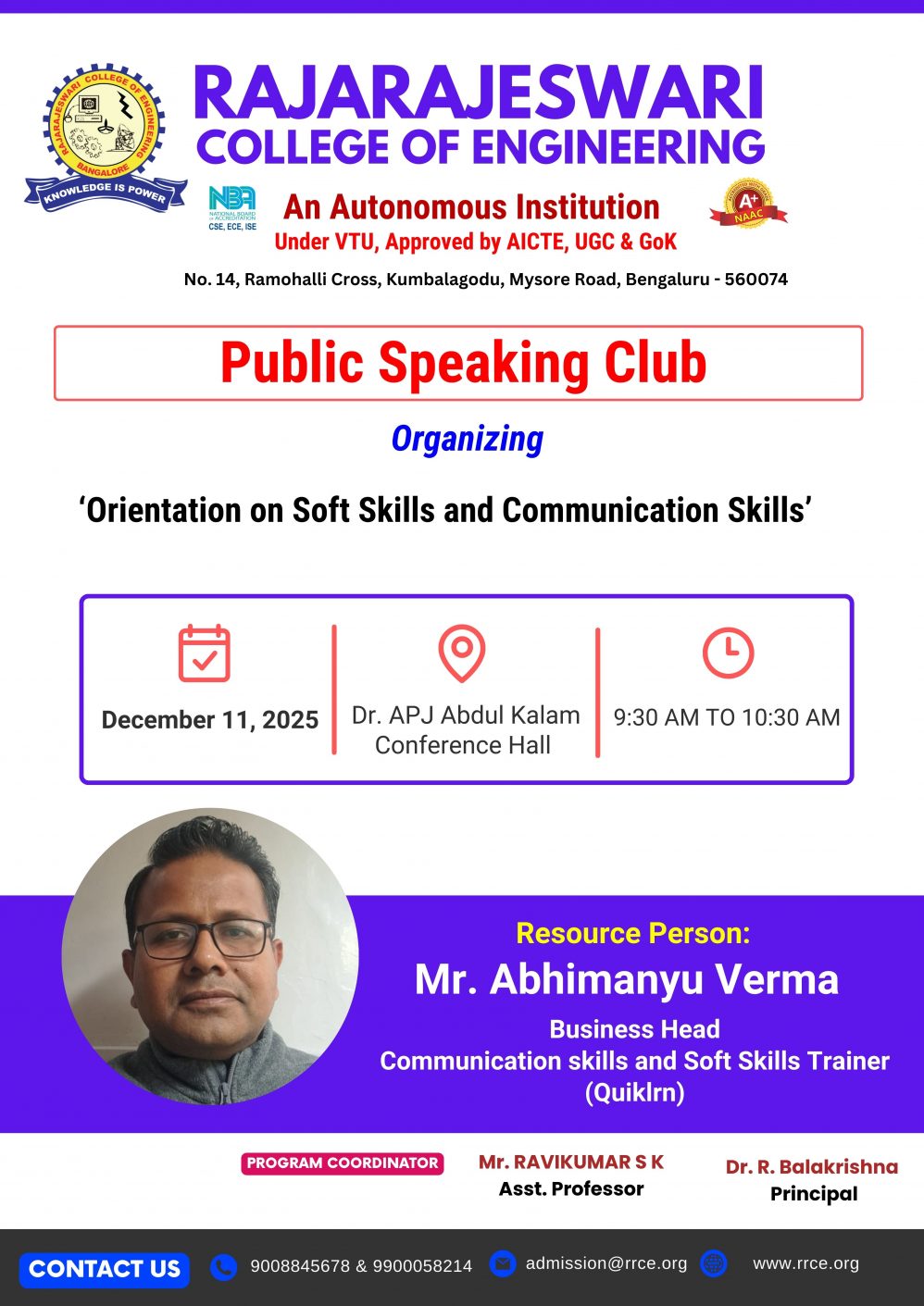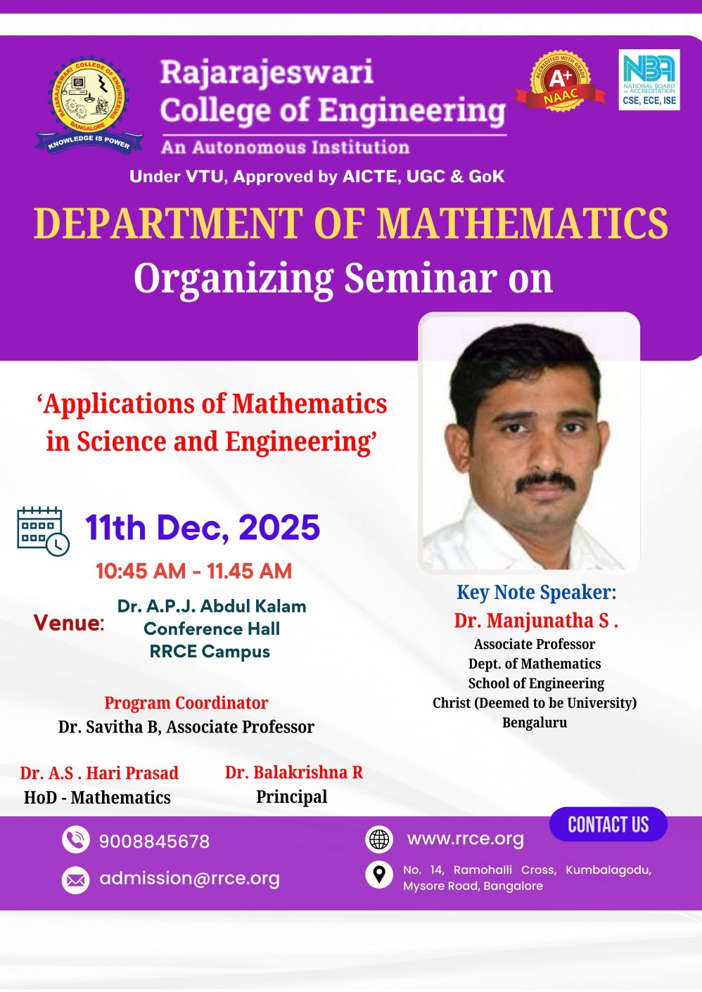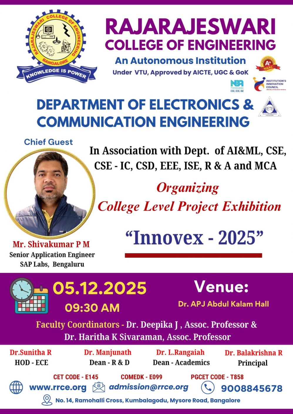 Venue : Dr. APJ Abdul Kalam Conference Hall, RRCE.