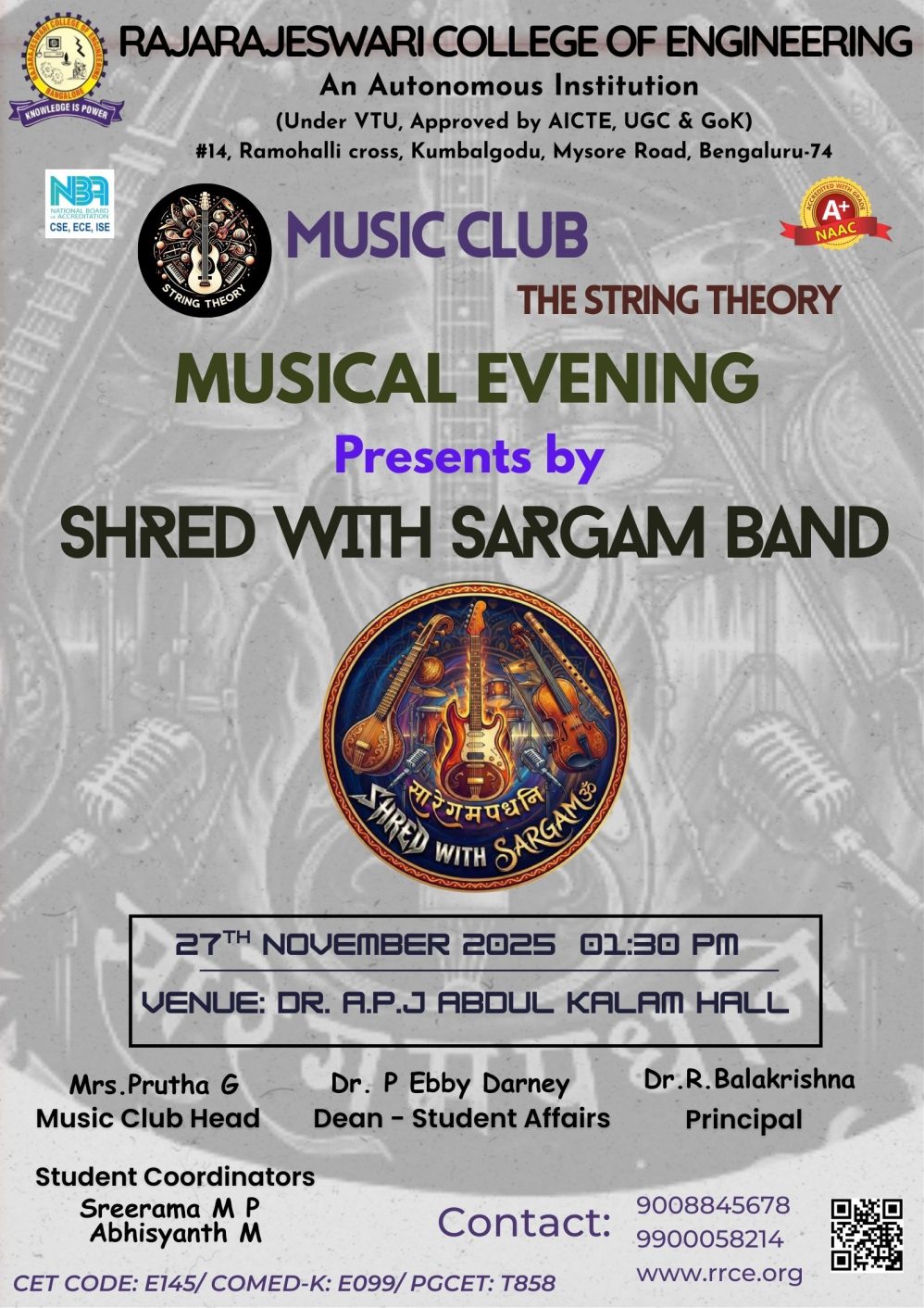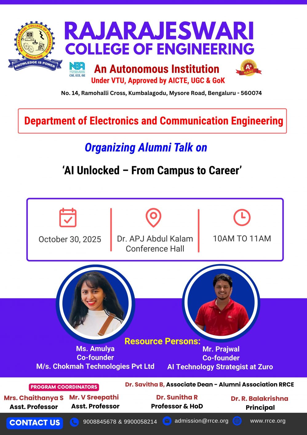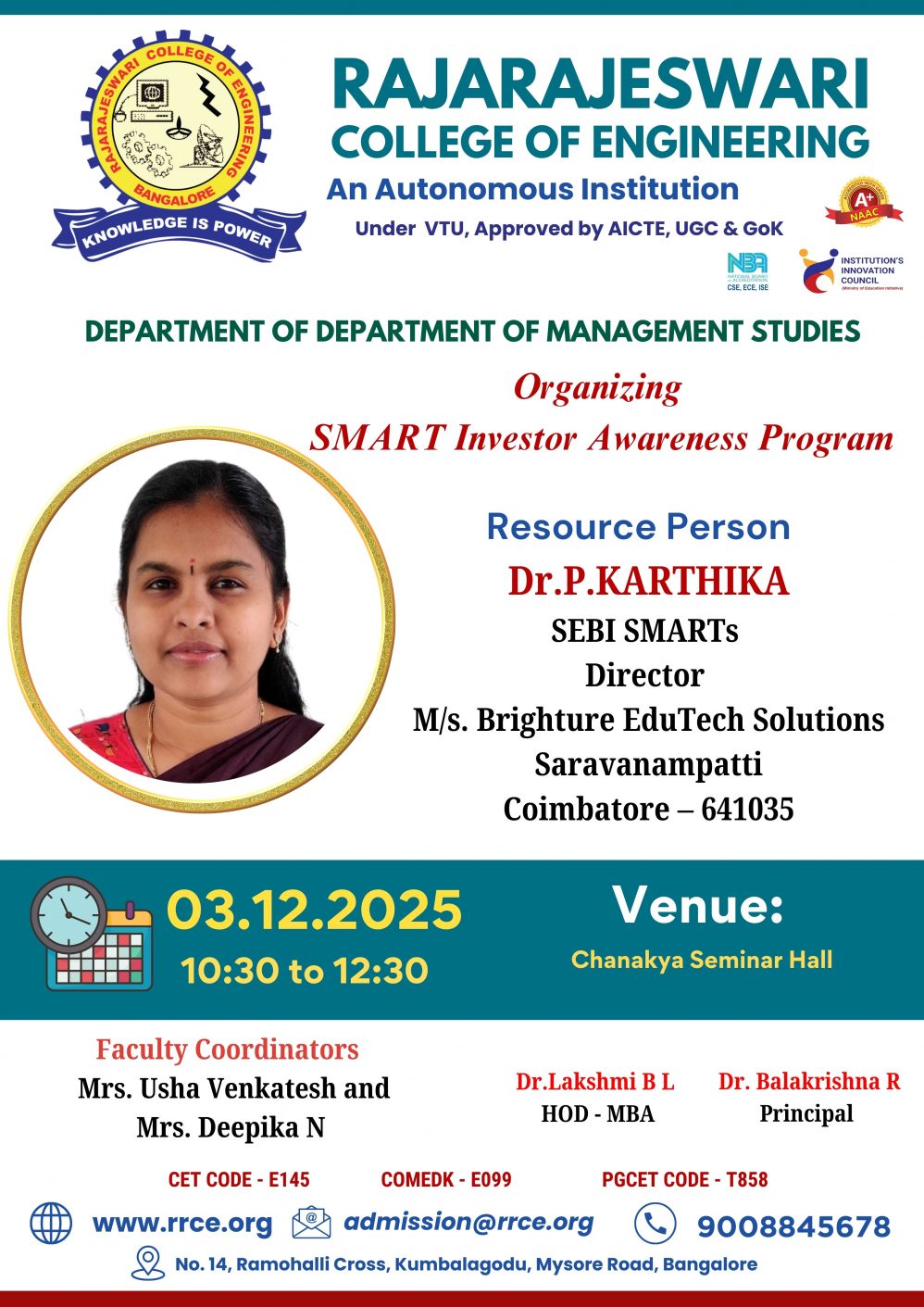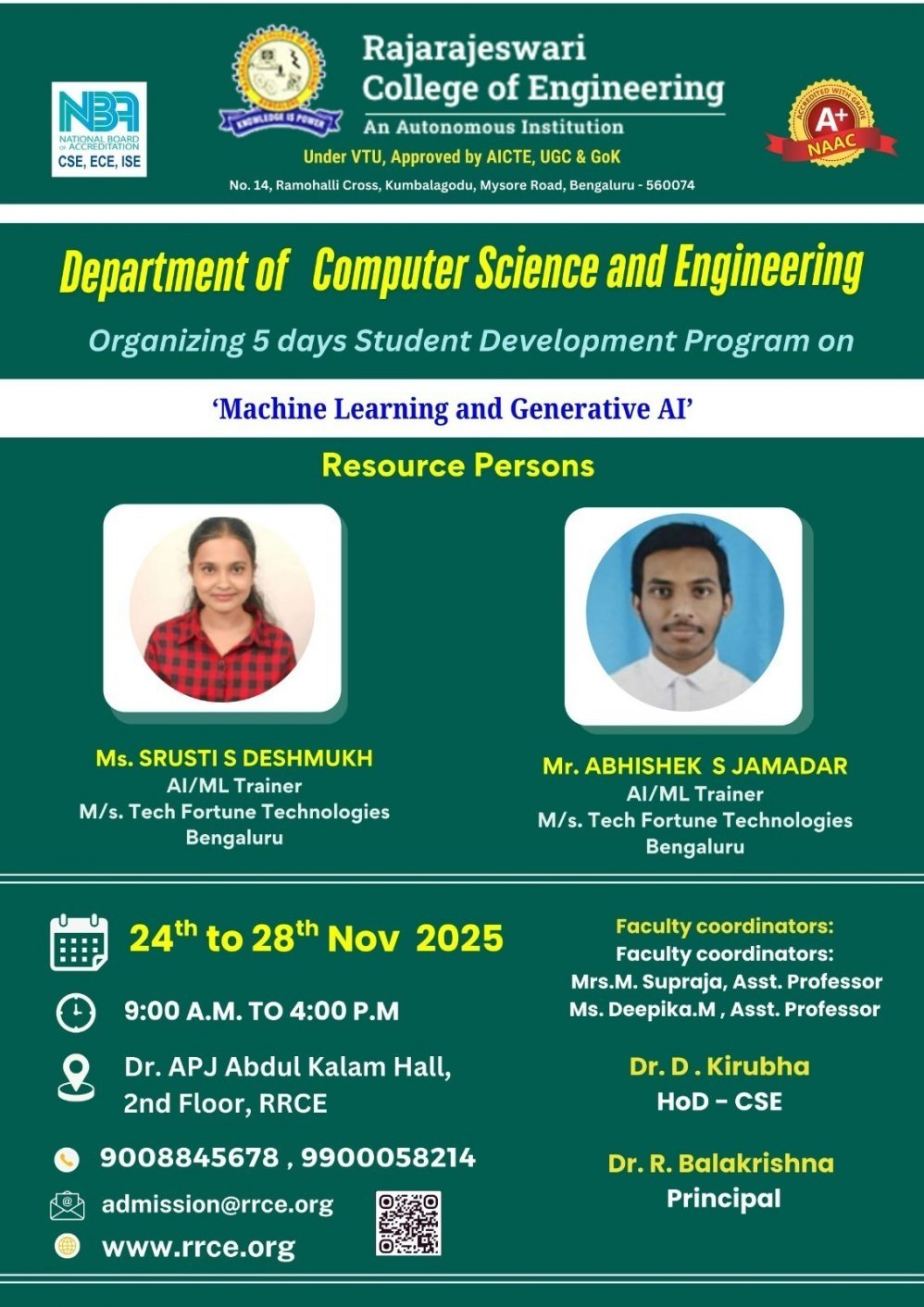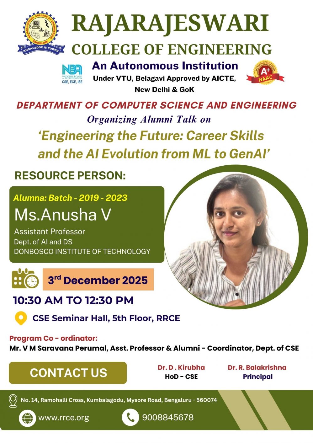 Venue : Dr. APJ Abdul Kalam Conference Hall, RRCE.