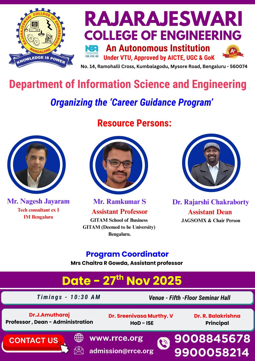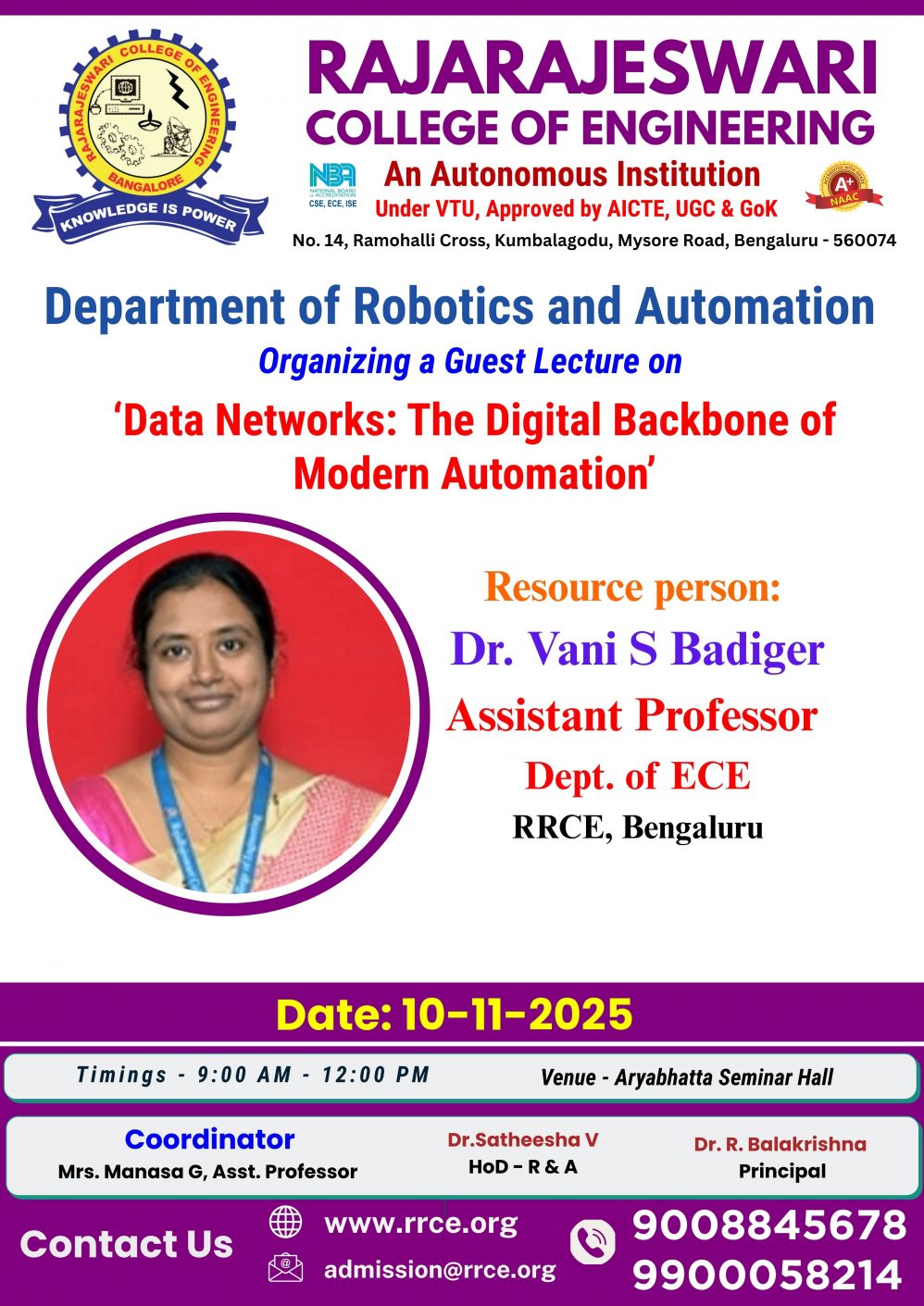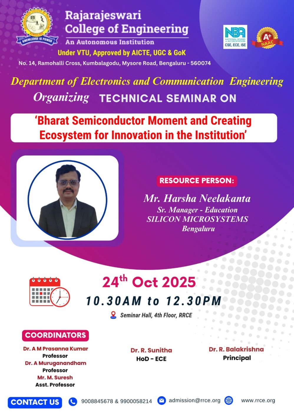 Venue: 4th Floor Seminar Hall, RRCE