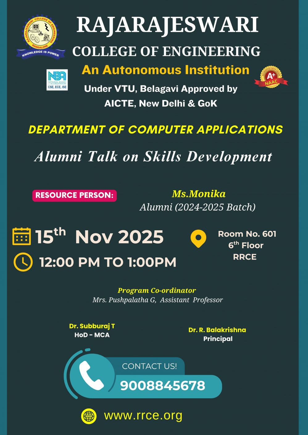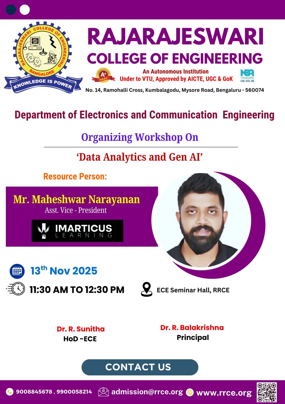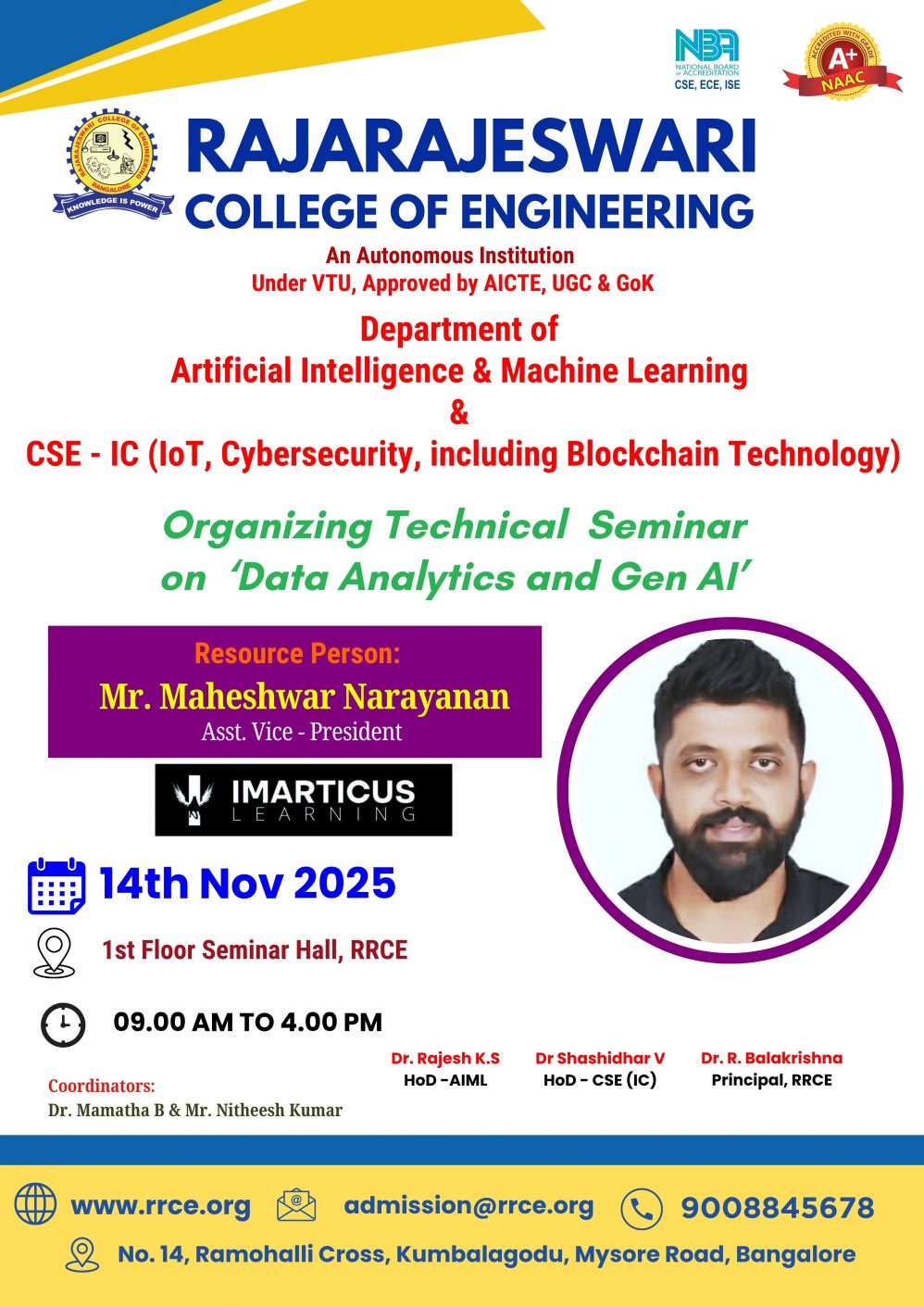 Venue: 4th Floor Seminar Hall, RRCE