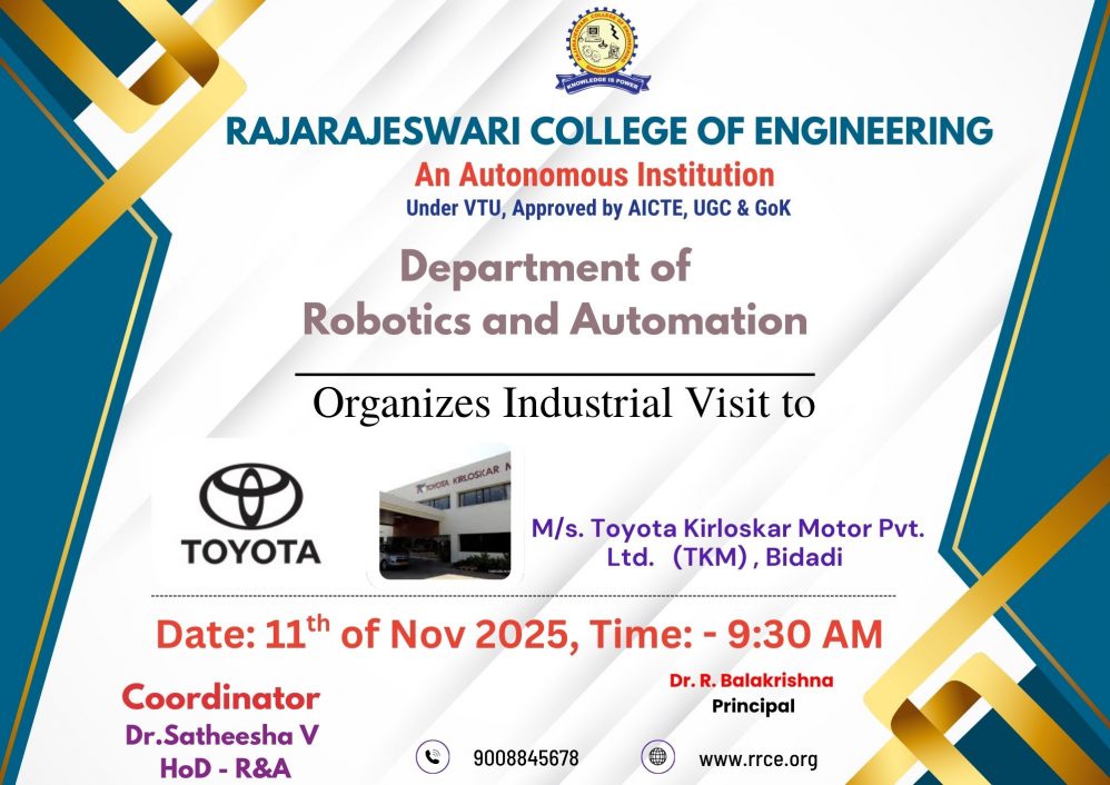 The Department of Robotics and Automation, Rajarajeswari College of Engineering, organized an Industrial Visit for 3rd Semester students to M/s. Difacto, Bidadi Industrial Area, Ramanagar. The visit aimed to provide practical exposure to industrial operations, automation systems, and real-time manufacturing practices.