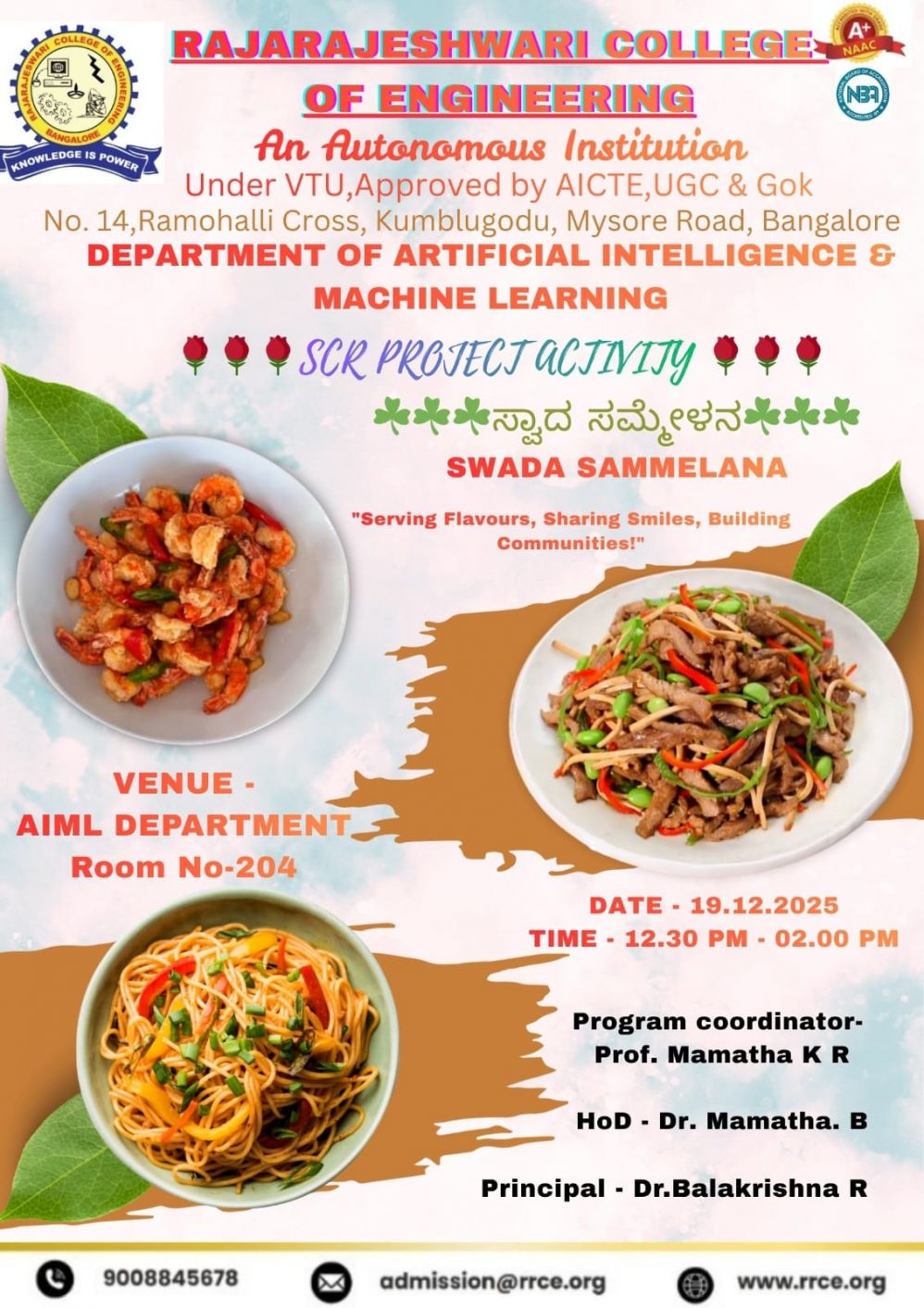 The Department of AIML successfully organized the SCR Project Activity – Swada Sammelana, a community-focused initiative that blended culture, creativity, and social responsibility.
