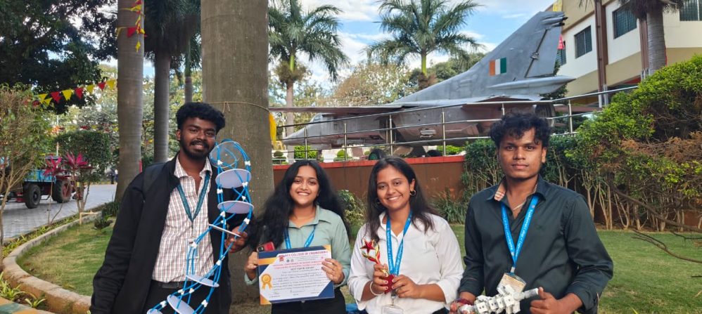 Students of the 7th Semester, Robotics & Automation (R&A) department secured 1st place at the Inter-College Project Expo 2025, held on 8th November 2025. The event was organized by the Department of Electronics and Communication Engineering, Global Academy of Technology, in association with the TechConnect Club and IEEE ComSoc.