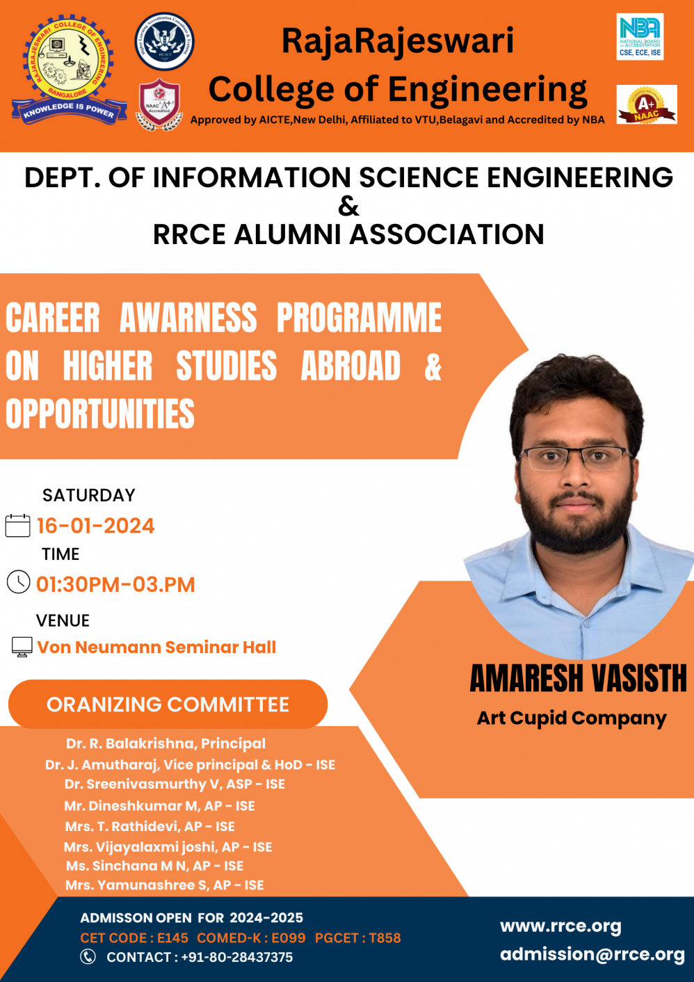 Organizing Committee : Dr.R.Balakrishna, Principal, Dr.J. Amutharaj, Vice Principal & HoD – ISE Dept., Mr. Dineshkumar M, AP – ISE, Mrs. Rathidevi T, AP – ISE, Mrs. Yamunashree S, AP – ISE & faculty members of ISE Department