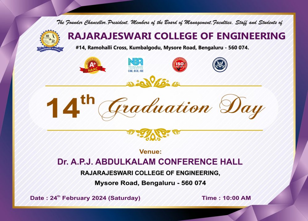 14th Graduation Day on 24th Feb, 2024. The Graduation ceremony was presided by Hon’ble Founder Chairman of Dr. A C Shanmugam. A total of 475 graduates received their degrees. Hon’ble Chief Guest: Dr. Ramanagouda V Nadagouda, Scientist
