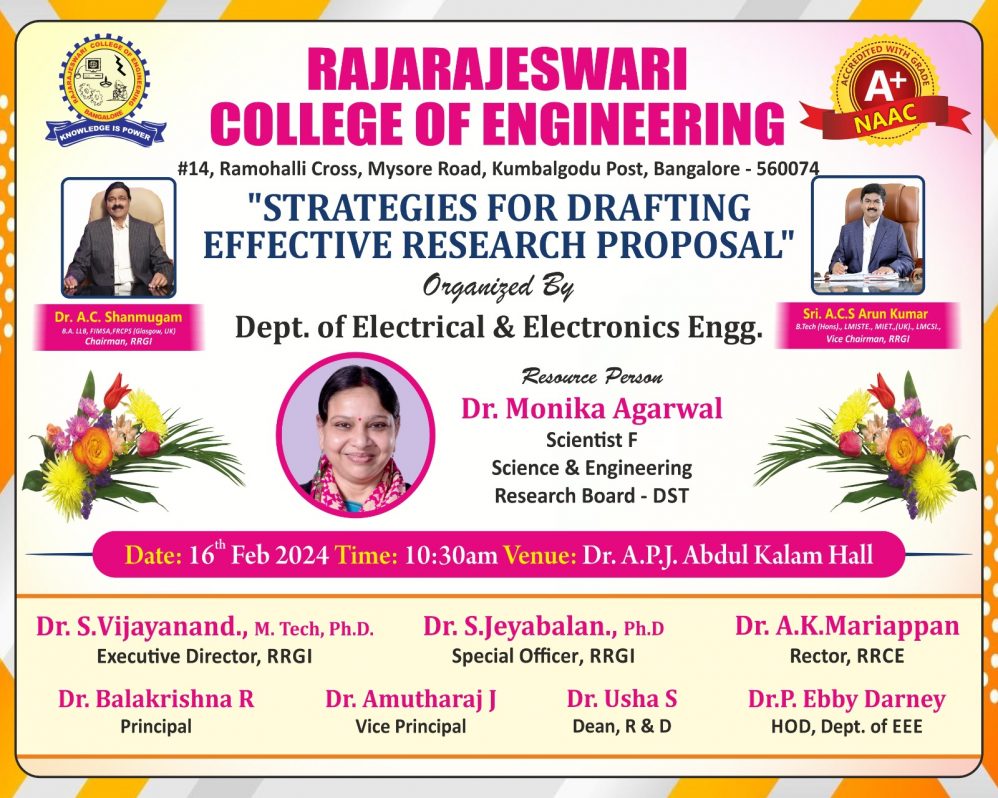 Venue : Aryabhatta Seminar Hall, First Floor, RRCE Resource Person : Dr.K.Aravithan, M.E., Ph.D,