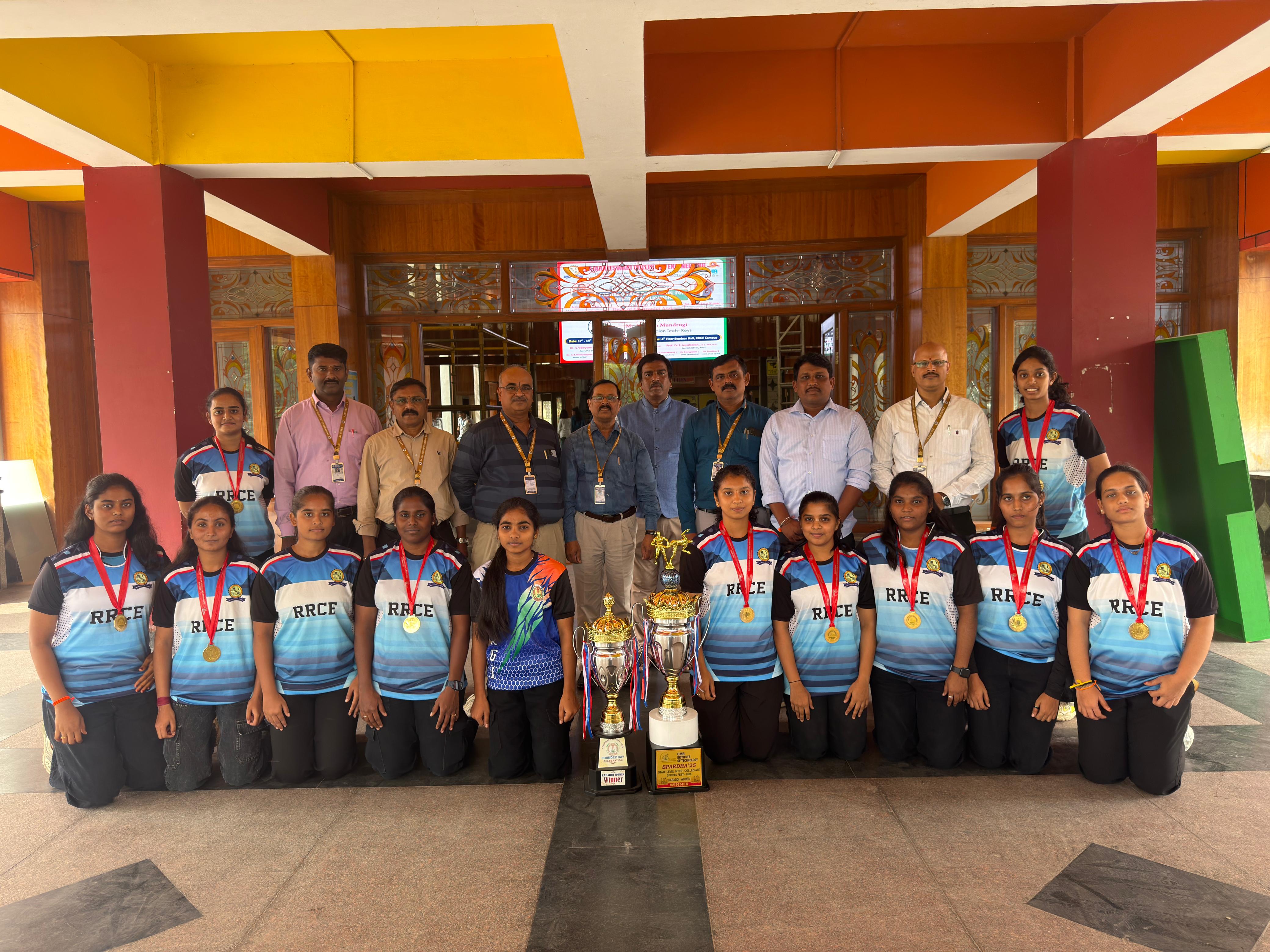 Rajarajeswari College of Engineering proudly celebrates a remarkable victory as the RRCE Women’s Kabaddi Team emerged as the Champions at CMRIT SPARDHA 2025.