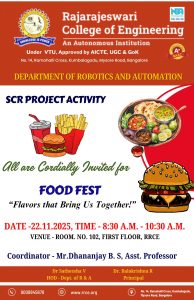 The Department of Robotics & Automation successfully organized a lively Food Fest as part of the SCR (Student Community Responsibility) project initiative. The event celebrated unity and cultural diversity through a delightful blend of flavors and culinary creativity.