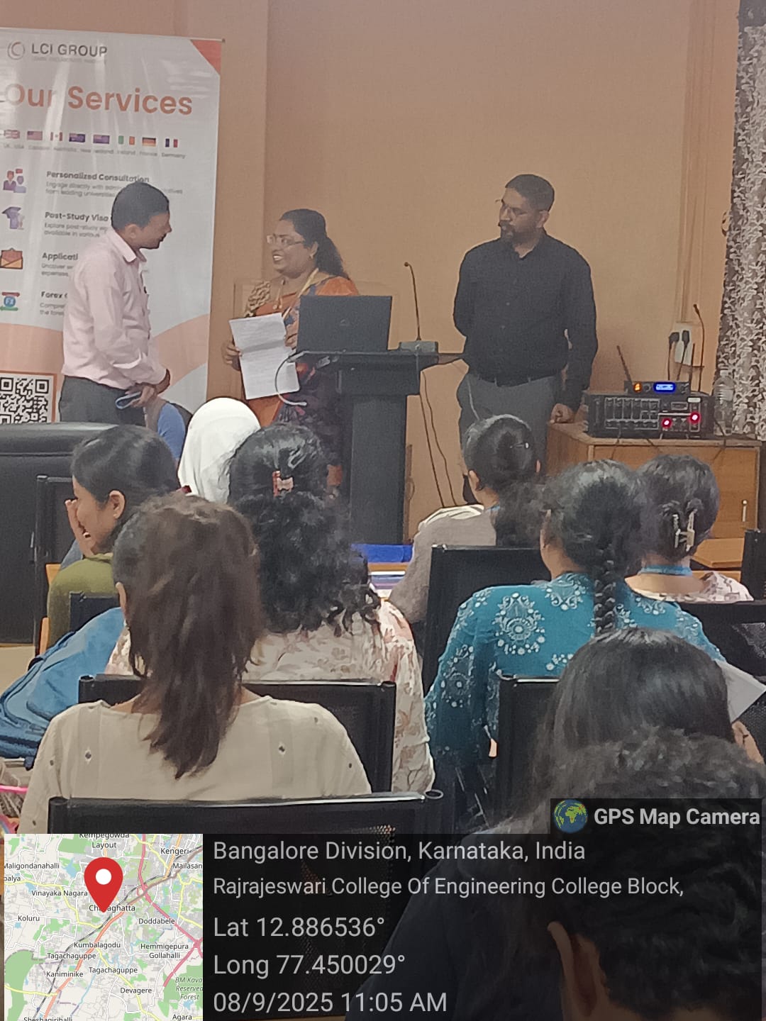 The Department of CSE (IC), Rajarajeswari College of Engineering is organizing a Seminar on “Exploring Higher Education Opportunities Worldwide” on Monday, 8th September 2025, from 11:00 AM to 12:00 PM at the First Floor Seminar Hall, RRCE.