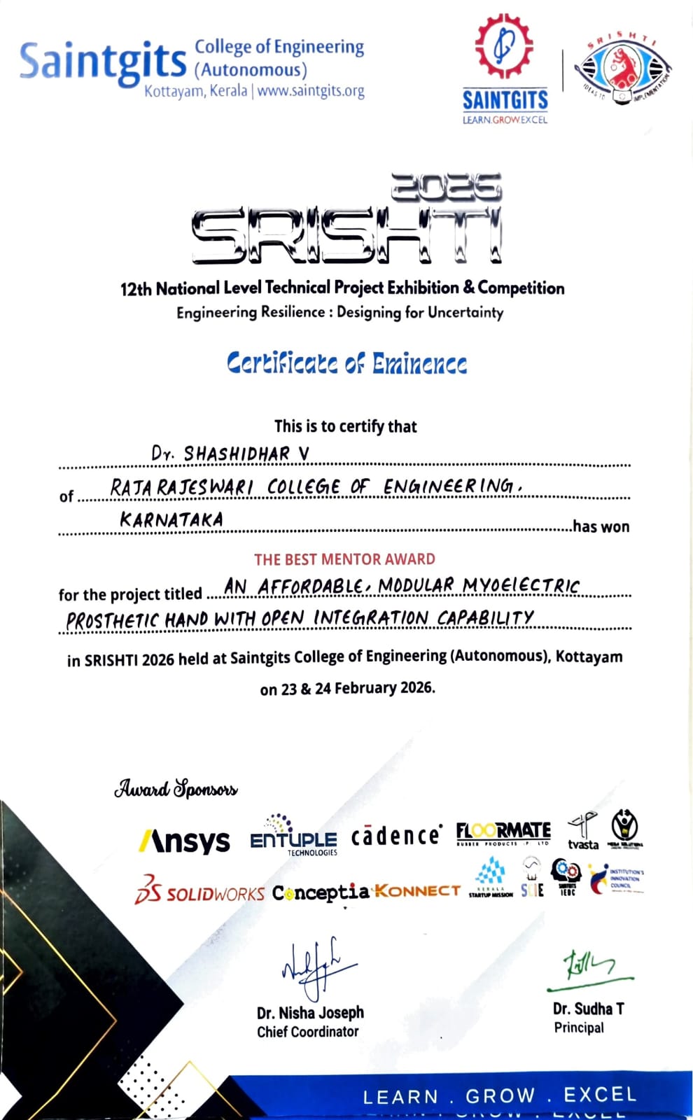 Best Mentor Award – ₹5,000 (Mentor: Dr. Shashidhar V)