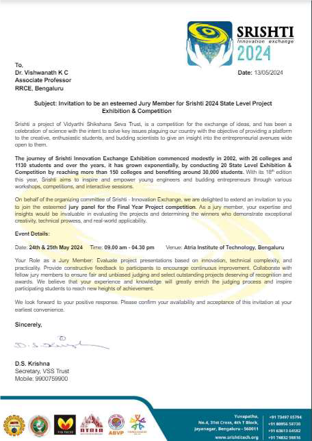 Staff acted as Jury : Dr. Vishwanath K C Associate Professor Department of Robotics and Automation RajaRajeswari College of Engineering