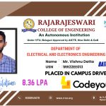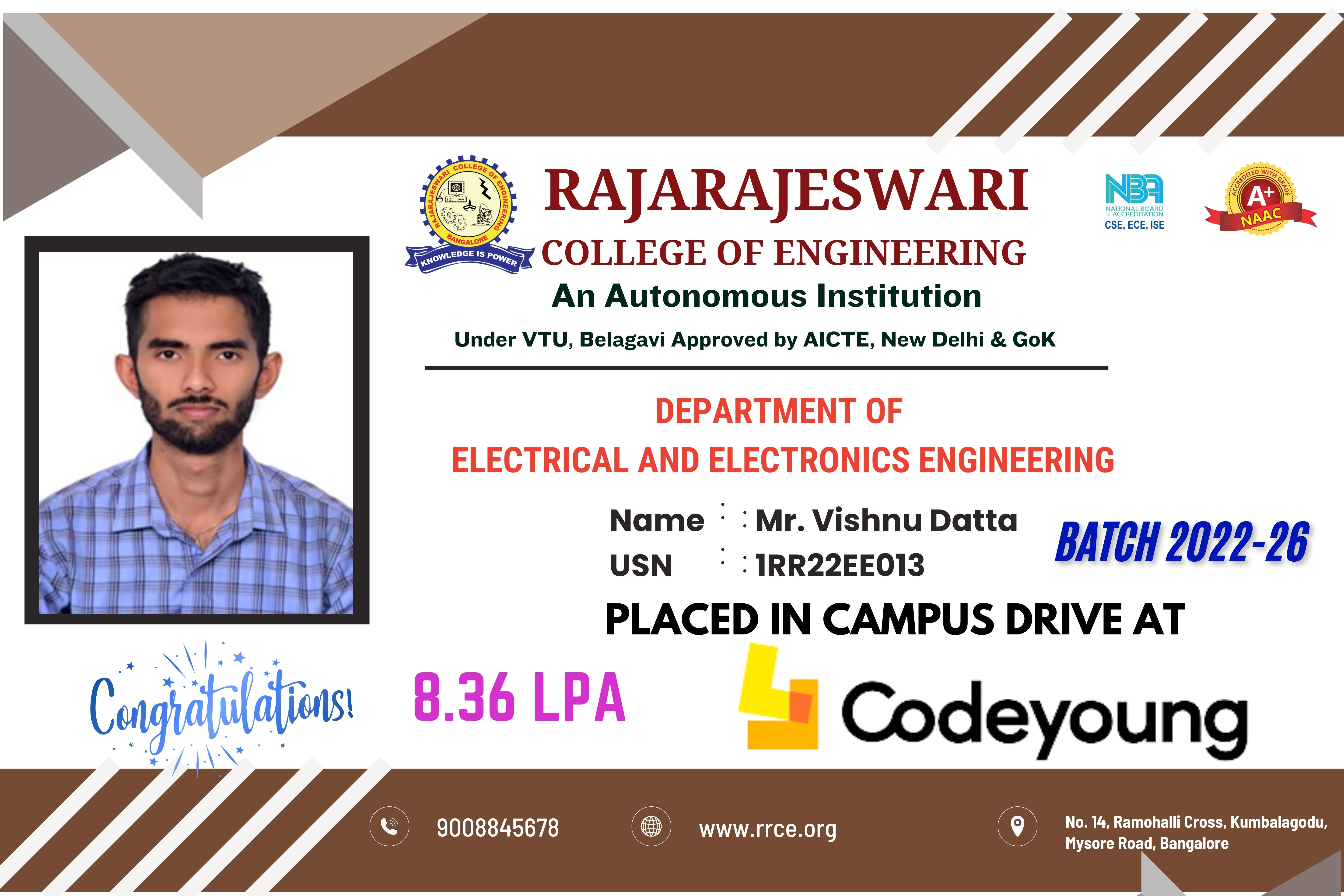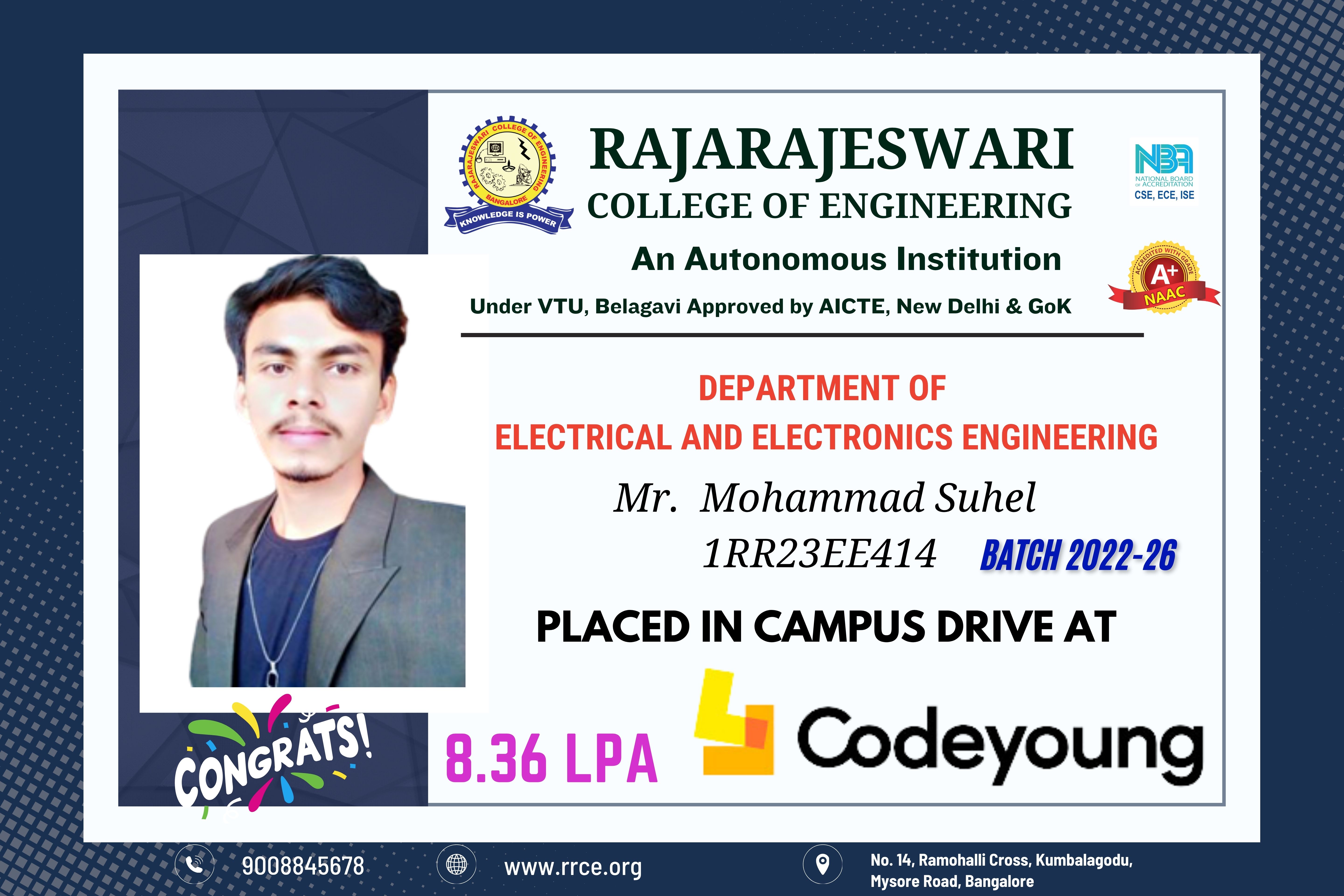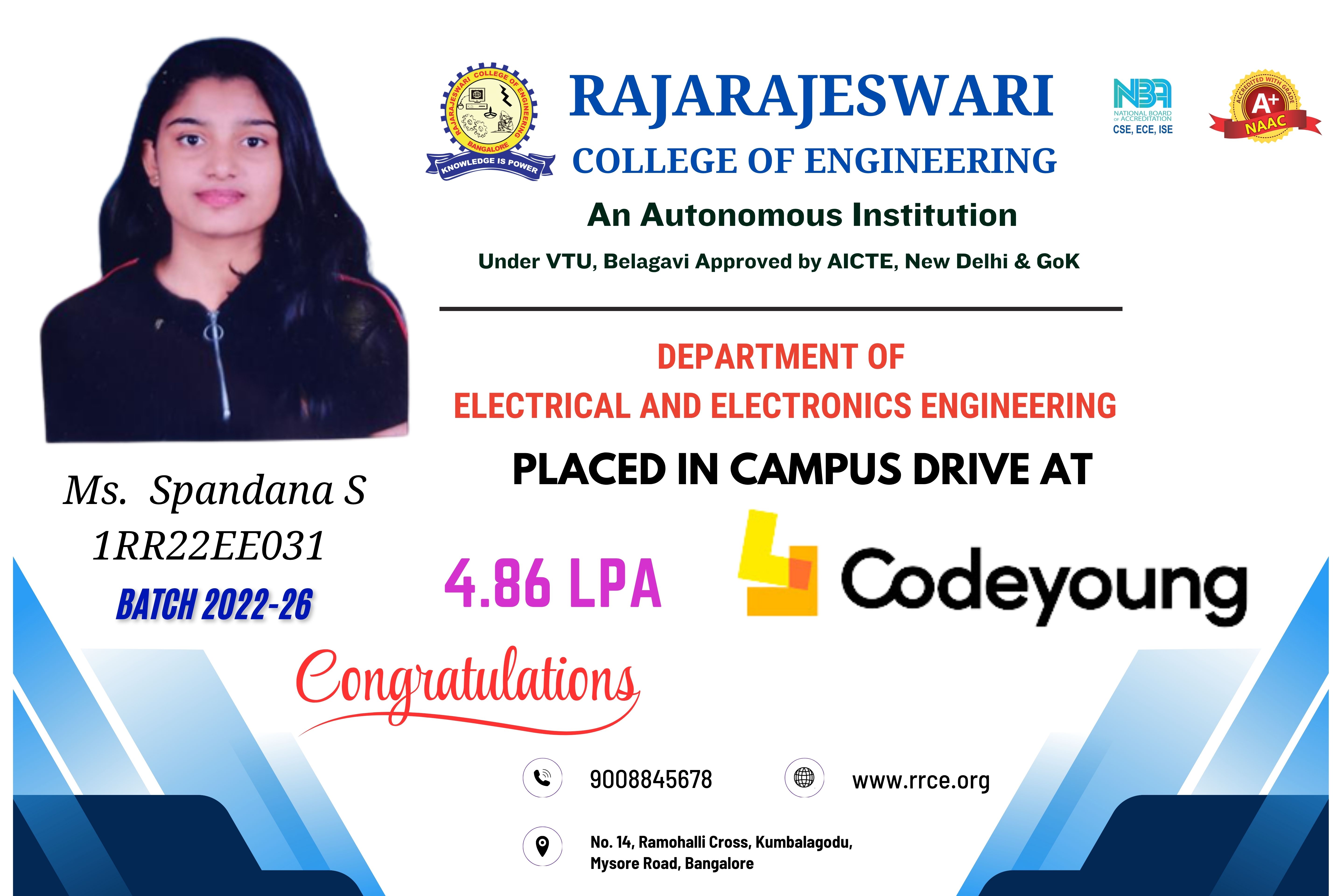 The Department of Electrical and Electronics Engineering is delighted to congratulate the following students for their successful placements in M/s. Codeyoung: