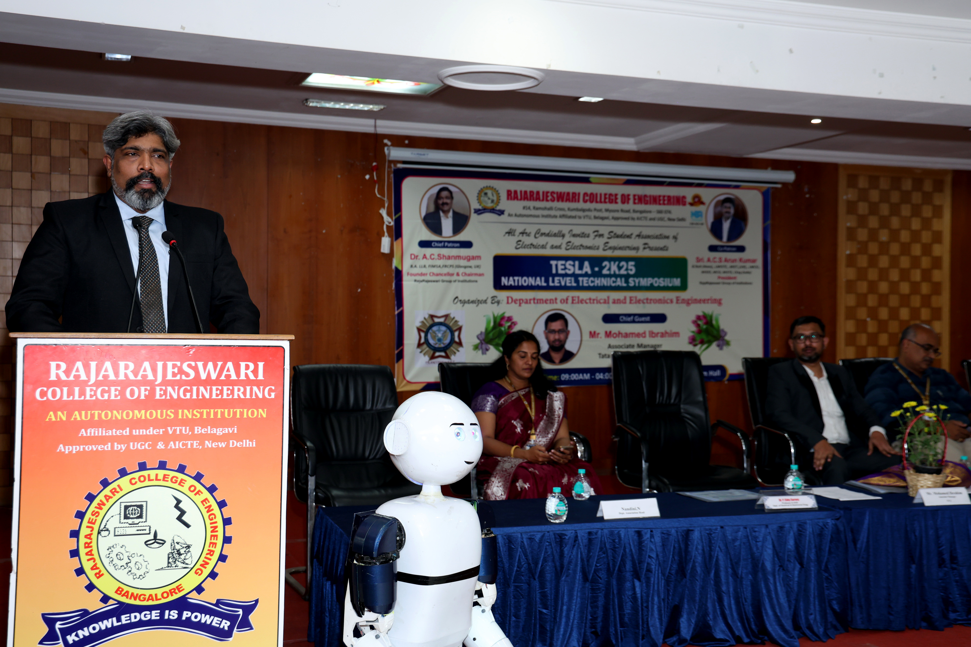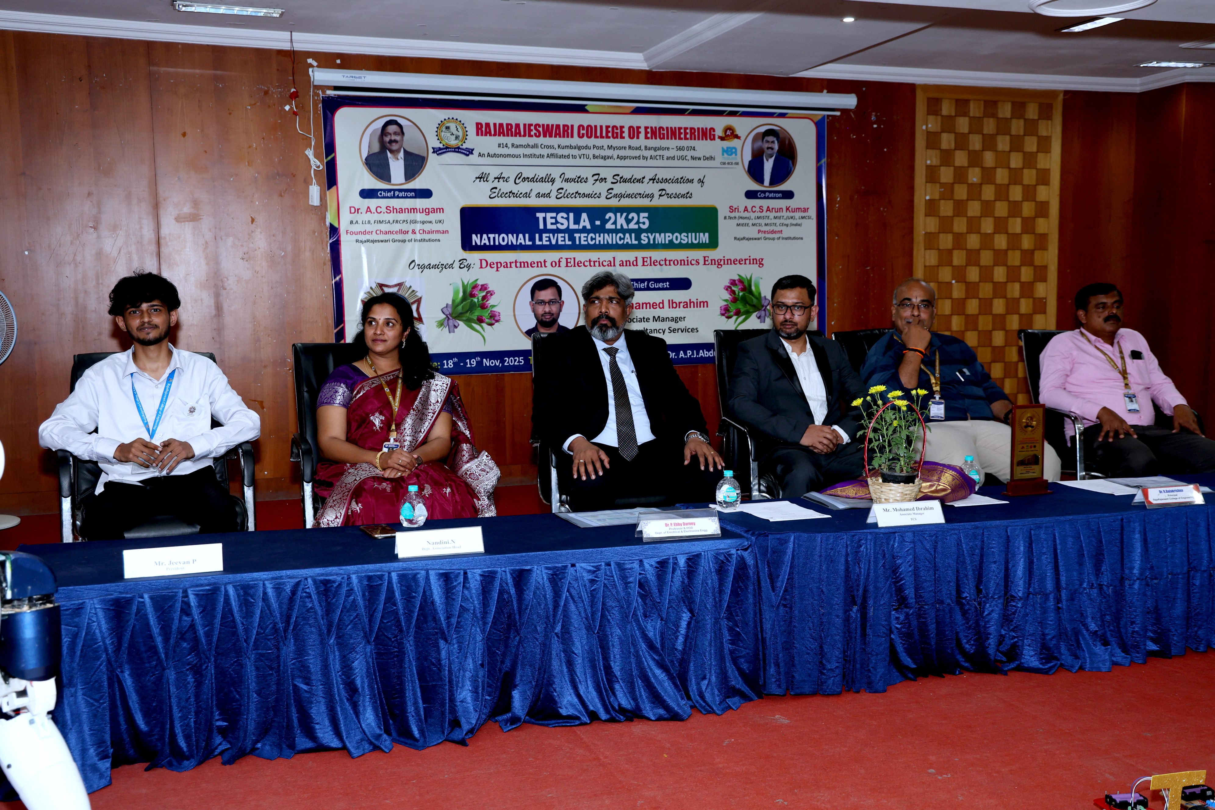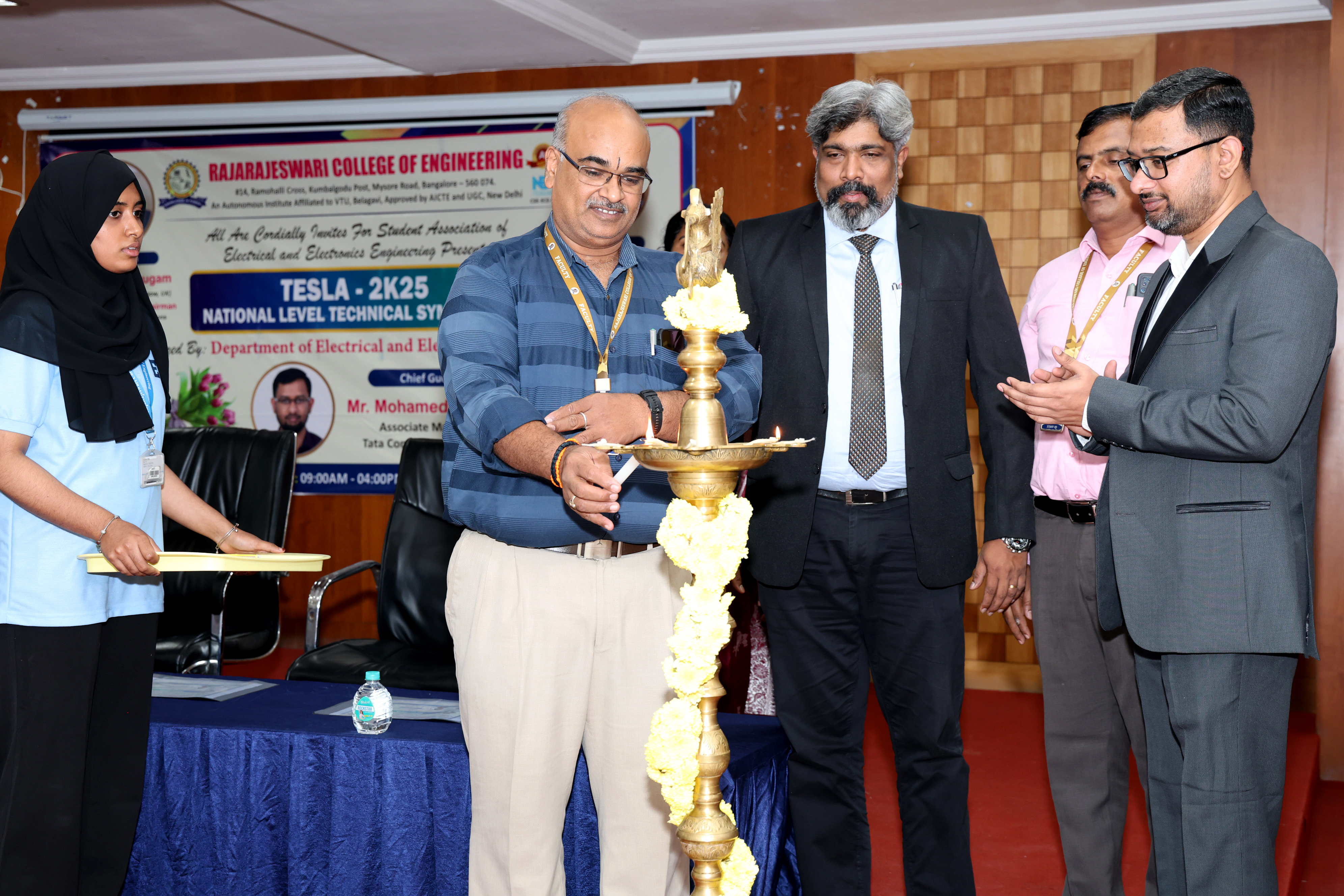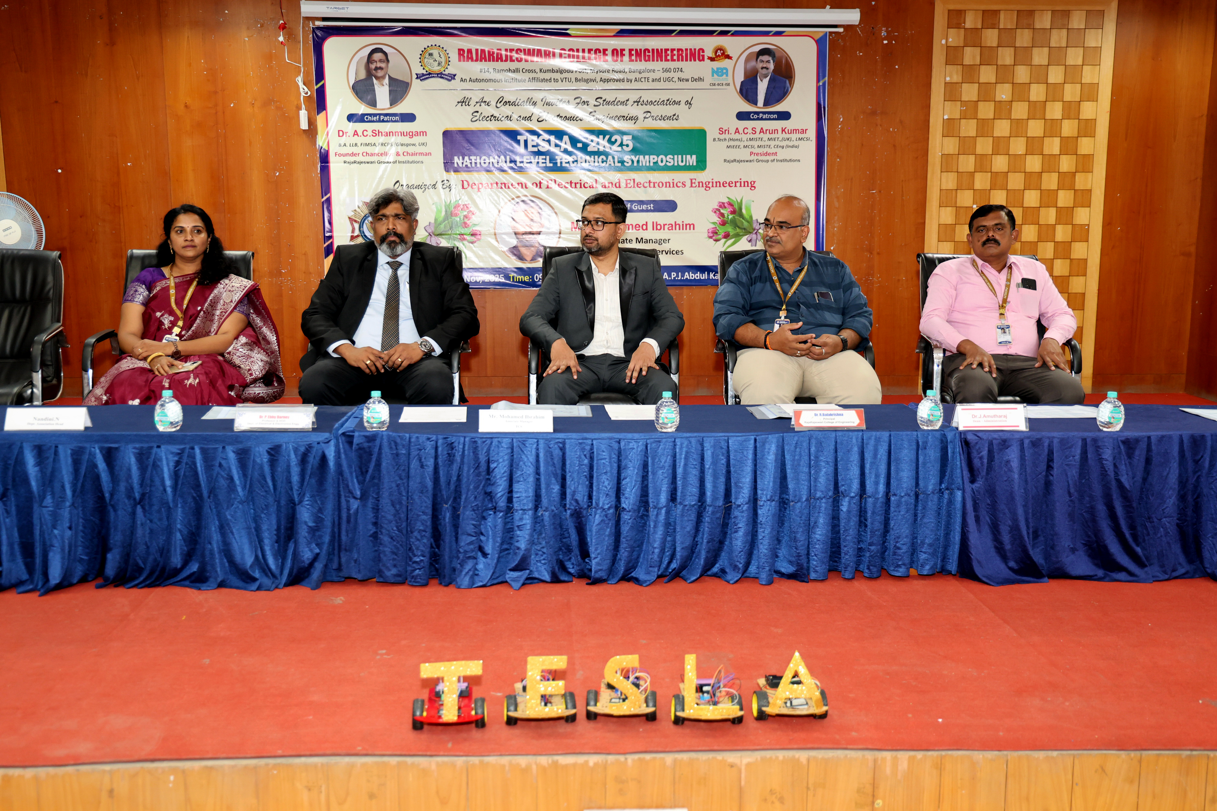 The Department of Electrical and Electronics Engineering, Rajarajeswari College of Engineering, Bengaluru, under the banner of the Student Association, is organizing a National Level Technical Symposium – “TESLA 2K25” themed “Transformerz – Get Magnetized” on November 18th & 19th, 2025 at Rajarajeswari College of Engineering.