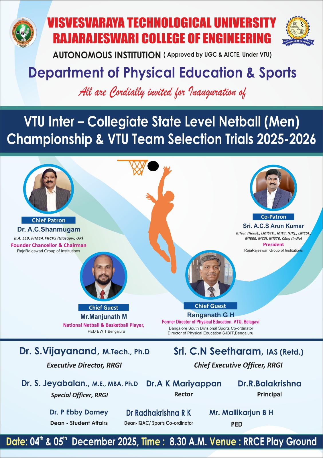 The VTU Inter-Collegiate State Level Netball (Men) Championship & VTU Team Selection Trials 2025–26 was successfully inaugurated and conducted with great enthusiasm and participation.